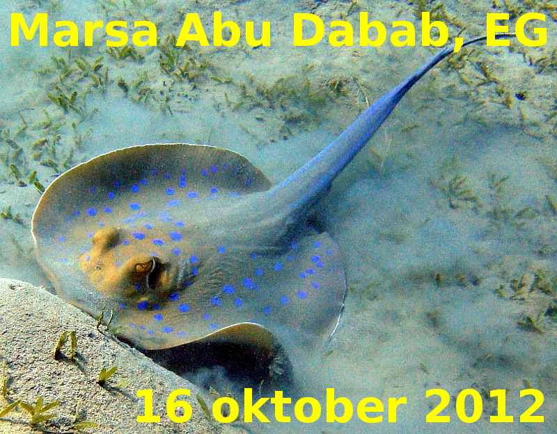 Duiken 2012 : 20121016-2 : 20120000-S790a-Taeniura-lymma-Blauwgespikkelde-pijlstaartrog-vis-bodem-baaiNZ-MarsaAbuDabab-EG |