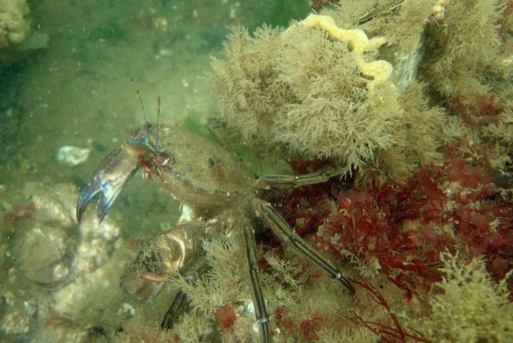 Duiken 2016 : 20160906-1 : 20160906-S398-Necora-puber-Fluwelen-zwemkrab-geleedpotige-ZeelandbrugZierikzee |